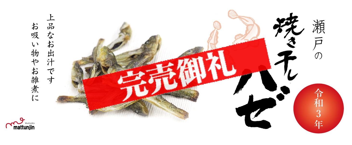 TOP 会社概要 お知らせ 柿渋米袋 瀬戸の焼き干しハゼ® 注文方法・配送 STORES amazon メルカリ お問合せ よくある質問 日記 2021.12.6 【完売御礼!】2021年度『瀬戸の焼き干しハゼ®︎』は完売しました! お陰を持ちまして今年の瀬戸の焼き干しハゼ ®︎はすべて完売いたしました。有難うございました。 来年はより多くの皆様にご提供できるよう釣りの腕を磨きますのでご期待ください。 STORESはこちら! amazonはこちら! メルカリはこちら!